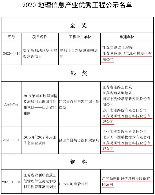 喜報!多項目榮獲“2020中國地理信息產業優秀工程獎”