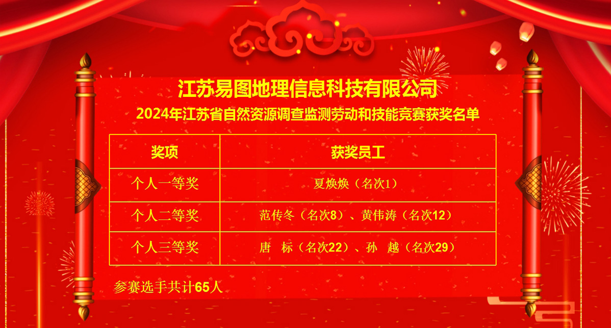 10月12日,2024年江蘇省自然資源調(diào)查監(jiān)測勞動和技能競賽在江蘇省常州市圓滿落下帷幕。我公司派出的5名參賽員工憑借扎實(shí)的專業(yè)技能,在此次競賽中脫穎而出,均獲得了驕人的成績,載譽(yù)而歸。