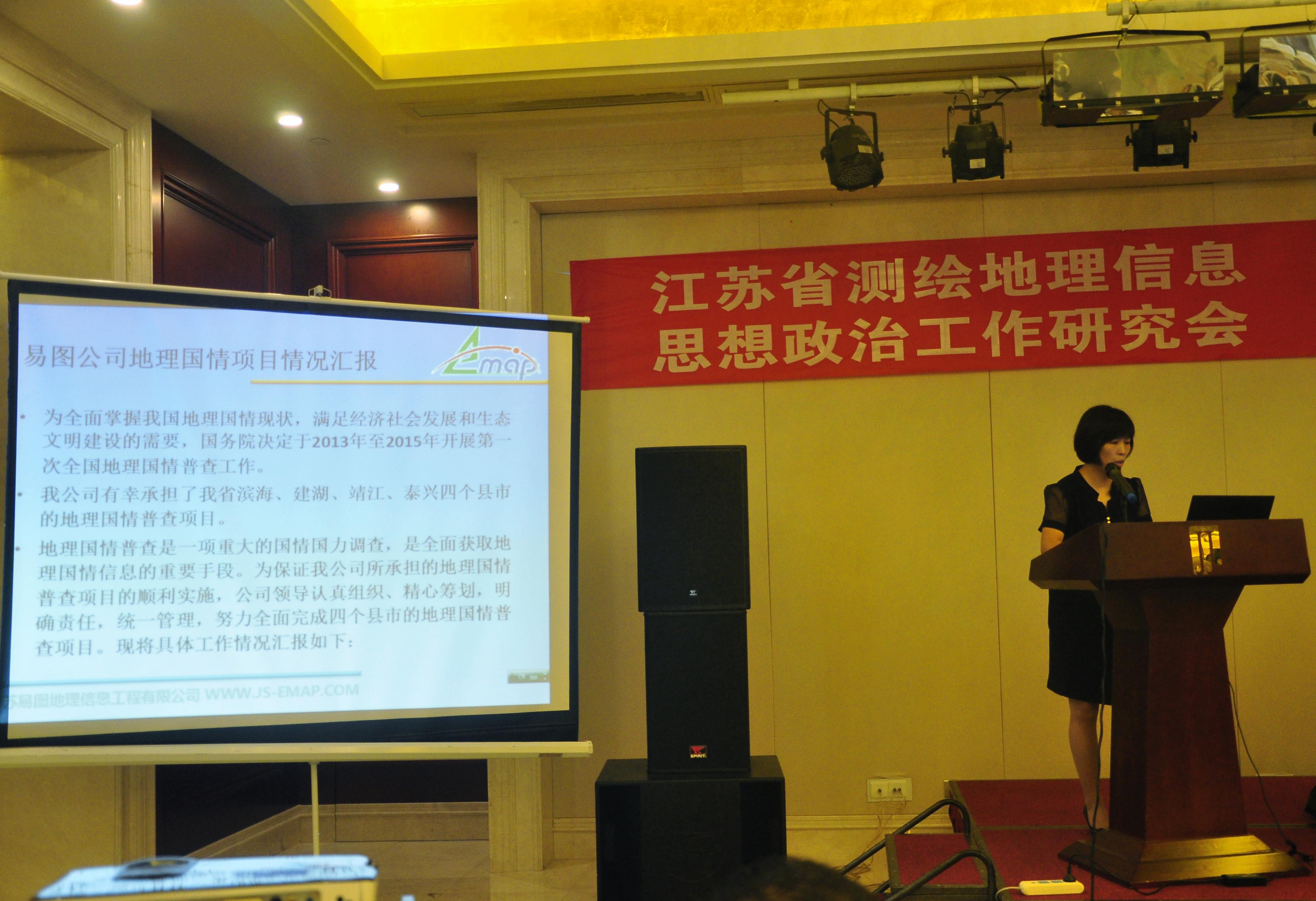 8月14日上午,江蘇省測繪地理信息思想政治工作研究會于鎮江召開,公司黨支部書記卞忠東同志應邀參加會議并就地理國情項目做了匯報演講。在研究會中,有關專家認真聽取了工作匯報,觀看了項目進程的演示,就相關問題進行了深入的探討,最后給予一致認可。專家組成員表示,易圖所承建的四個縣市的項目實施規范、技術設計書內容詳盡、辦事效率高,滿足了國家國情普查的要求、經濟社會發展和生態文明建設的需要,為國家提供了最精準的地方地理信息數據。